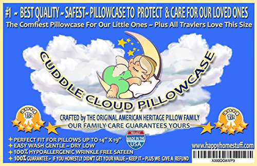 Product Description Trust Your Toddler or Traveler's Comfort to the Experts. With years of experience our 3rd generation USA craftsmen have become the most sought after linen and pillow makers in America. Now we make our same ultra comfy, top quality pillow and case enjoyed in fine hotels in just the right size for your little one or traveler. The Cuddle Cloud Toddler/Travel Pillow (sold separately) and the perfectly fitting satiny soft Cuddle Cloud Pillowcase will quickly become their "gotta have" favorites! No More "Naked" Pillow or Baggy Pillowcase Most toddler/travel pillows arrive "naked," and finding a case can be a challenge. While some pillow brands recommend "making due" with a baggy standard size case, Cuddle Cloud knows a perfectly fitting satiny soft anti-wrinkle pillowcase makes your pillow even comfier and keeps it cleaner. While our Cuddle Cloud Pillowcase is designed to fit our Cuddle Cloud Toddler/Travel Pillow (sold separately), it can be used with any size pillow up to 14x19. Simply The Smartest and Best Toddler/Travel Pillowcase All materials are 100% hypoallergenic - they won't irritate skin or aggravate allergies. Our smooth Cuddle Cloud sateen pillowcase won't develop rough "pills" with washing and best of all there's no need to iron it like other pillowcases! Machine wash cold, tumble dry low. Love Your Cuddle Cloud Pillowcase or Your Money Back! 0
