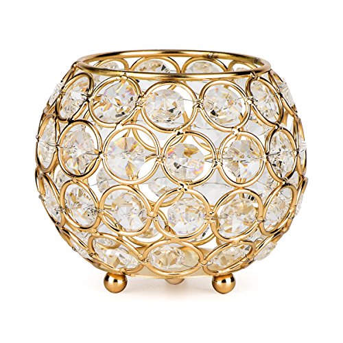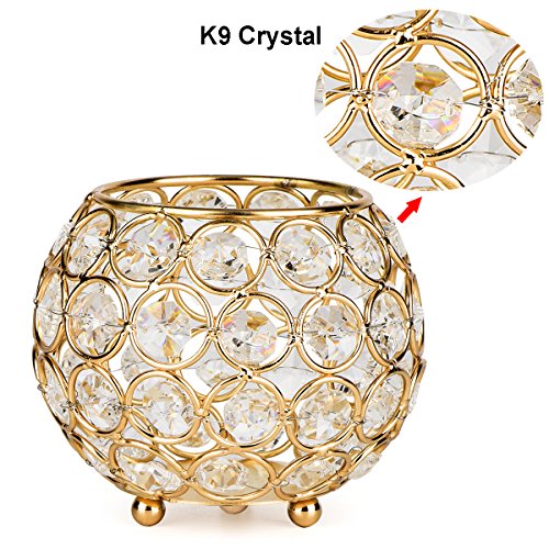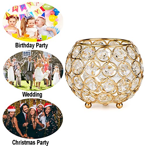 Specification: Shape: bowl shape with built-in metal base Bowl caliber diameter: 3.15inch External diameter: 3.94inch Height: 3.54inch Material: top K9 crystal gold metal Fireproof: YES Suitable for: flameless electronic candle or flammable candle
