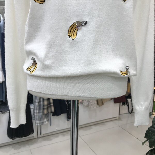 바나나 니트 티셔츠입니다바나나 자수와 비즈 포인트로 어디에나 코디하시기 좋답니다부드러운 원단감으로 터치감이 좋답니다어디에나 코디 가능한 디자인으로 활용도가 좋답니다사이즈 FREE가슴둘레 45cm총장 55cm