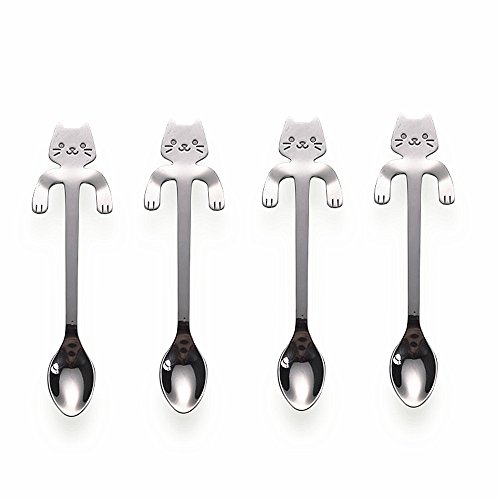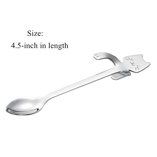 Studio : Huayoung Publisher : Huayoung Product Description Materials: SUS 304 Stainless Steel Color: Silver Size: 11.8cm*2cm (4.5-inch in length, 0.8-inch in width) Net weight: 15g/pcs Shipping weight: 0.25kg Package: Pack of 4-pcs Usage: Use for tea, coffee, dessert, appetizers, perfect baby or toddler spoon, or any other need of a small utensil. Features: 1. Lovely cat spoons, easily matches with most of the coffee mugs and cups. 2. Pack of 4-pcs, each measures 4.5-inch in length. 3. Unique cat claw hanging design, creative and practical, can hang on the rim of the mugs or hang on any flatware organizer. 4. Stainless steel construction, reusable and durable. 5. Mini and cute, perfect for adding sugar to your drinks. And serve well as baby food spoons. 0