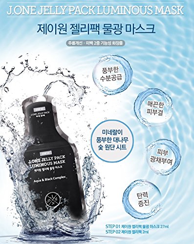 -. Feature : J.One Jelly Pack Luminous Mask (5pcs) / 2 steps skin treatment effect / Whitening & Anti wrinkle effect / Charcoal sheet / Step 1 : Luminous Mask Pack (27ml) / Step 2 : Jelly Pack (2ml)
