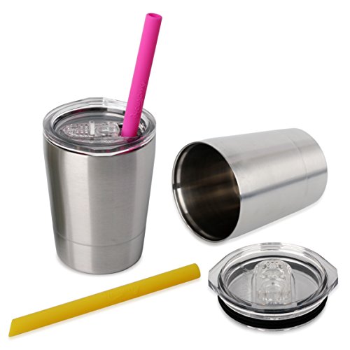 Suggest Handwashing and DO NOT for Use in Microwave/Microwave/Freezer. 1. High Quality Food Grade 18/8 Stainless Steel. 2. 100% Handmade Brushed Stainless Steel Surface Process. 3. Vacuum Insulated Double Wall Design Keeps Beverage Hot or Cold for Extra longer. 4. Suggest Hand Washing. 5. New Special Design Silicone Straw Only for Kids. Perfect Size, Soft but Durable, Non Teeth Chipping, Reusable, Eco-friendly, Tasteless Non Metallic Taste. And ALL PURPOSE USAGE: milk,smoothie,hot chocolate,juice,water,etc. 6. Lids Made by 100% Original Tritan Material. 7. Capacity : 8.5oz/260ml * 2 pack. 8. Ideal for Gifts. 0 |
