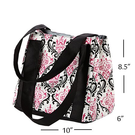 The Venice is one of our bestselling insulated lunch bags for women. It is available in a variety of stylish patterns that adults, teens and even younger girls love. The Venice is designed to be a versatile tote with two 1.5" wide carry straps that allow the bag to be worn over the shoulder or arm. This lunch bag will keep your lunch fresh for hours and has an easy-to-clean interior that is totally food safe and BPA-free. The Venice is a medium sized bag, that comfortably holds a water bottle, several reusable containers plus a few pieces of fruit (or your favorite book). A strong magnetic snap keeps the contents secure, and an inner mesh pocket can hold an ice pack (included), or other small belongings. Bag measures 10” wide x 6” deep x 8.5” tall.Feature
