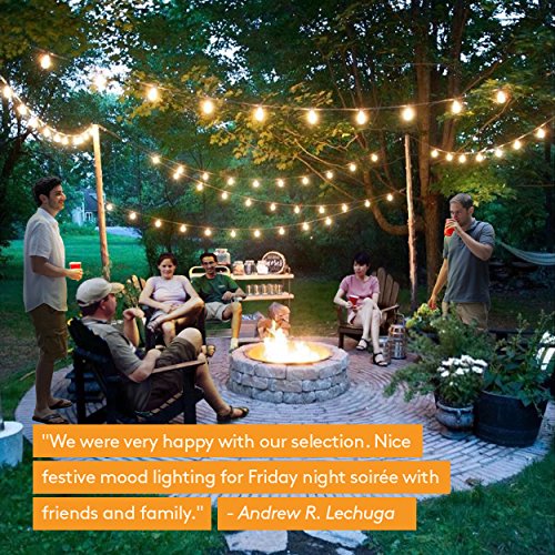Brightech Ambience Pro Commercial Grade Outdoor Light Strand with Hanging Sockets - 48 Ft Market Cafe Edison Vintage Bistro Weatherproof Strand for Patio Garden Porch Backyard Party Deck Yard – Black