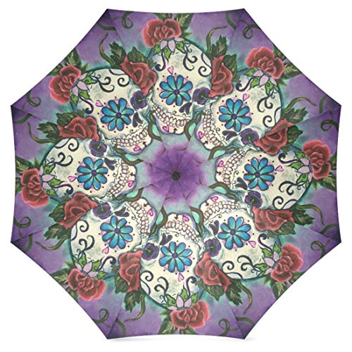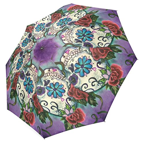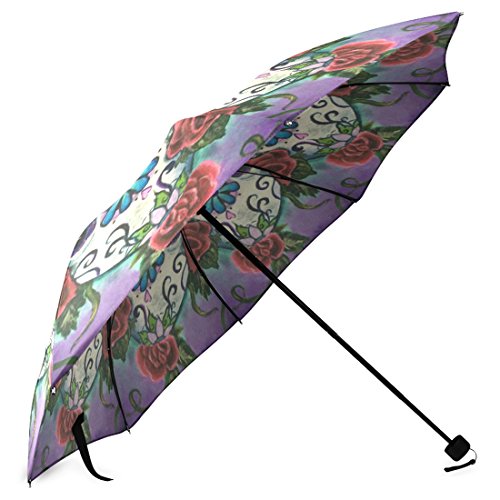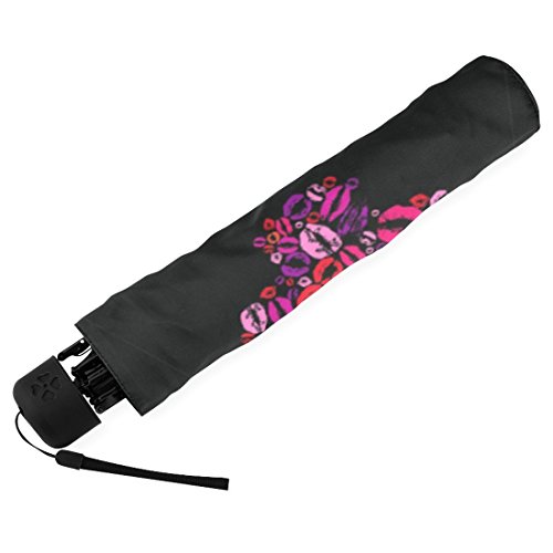 -. Brand : InterestP.R.Int -. Color : Multicoloured -. Department : unisex-adult -. Feature : Made from 100% polyester pongee waterproof fabric. / Using heat sublimation technique to prevent discoloring, long-lasting effects. / 8 ribs made from strong fiber for extra support. / Each rib sized in 21.7 inch and consists of 3- section aluminium for flexibility and strength. / Gripped plastic handle for firm hold, sized in 25.6 inch. -. PackageQuantity : 1 -. ProductGroup : Apparel -. ProductTypeName : LAGE -. Title : InterestP.R.Int Cool Red Lips Sugar Skull Black Foldable Travel Rain Umbrella