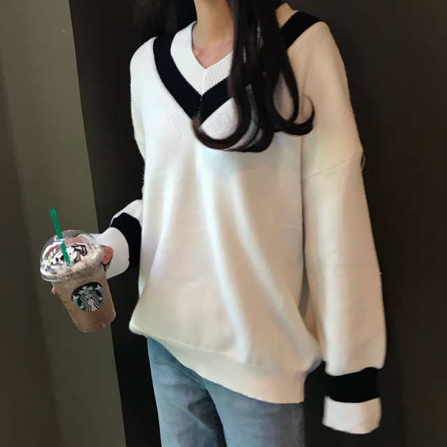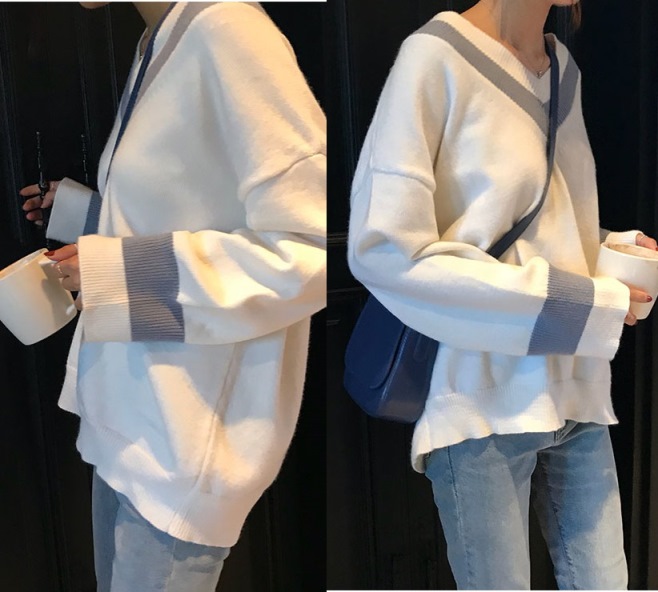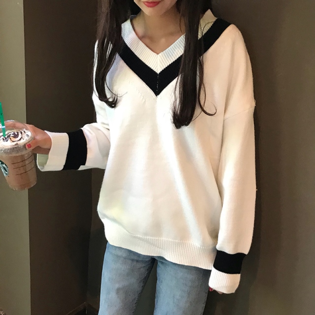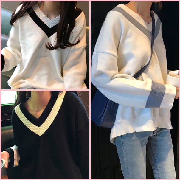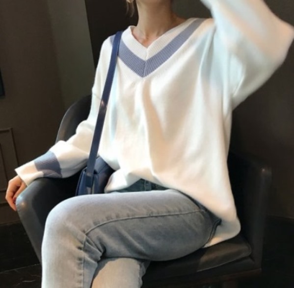 Vネックラインモノトーンニット★