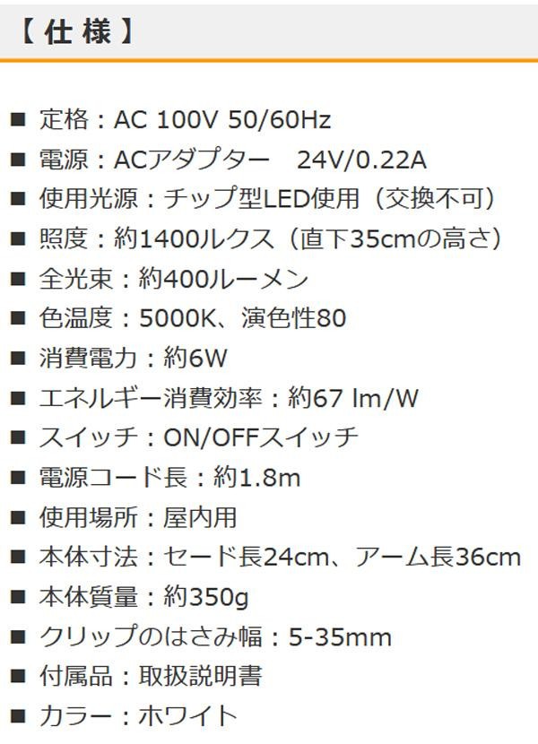 フレキシブルアームが便利なLEDクリップライトです。