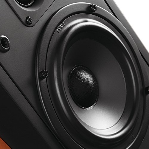 CLASSIC DESIGN - Double wooden panels provide substance and balance to reduce vibration caused by box, while reddish-brown wooden cabinet with the stylish removable black knit grilles make it classic and aesthetic