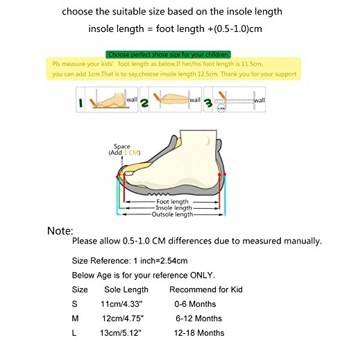 Description: 100% Brand New and High Quality. 3 Colours Available: Pink, Silver and Gold. 3 Sizes Available: S, M, L ?? S: Sole Length: 11cm / 4.33 inches; Sole Width: 5.5cm / 2.17 inches; Recommended Age: 0-6 months. ?? M: Sole Length: 12cm / 4.75 inches; Sole Width: 5.5cm / 2.17 inches; Recommended Age: 6-12 months. ?? L: Sole Length: 13cm / 5.12 inches; Sole Width: 5.5cm / 2.17 inches; Recommended Age: 12-18 months. ?♥ Please allow slight errors due to the manual measurement. Thank You! ?♥ Please confirm the size before purchasing. Thank You! Material: PU Leather Cotton Cloth Features: 1. Lovely first walking shoes for 0-18 months baby girls! 2. The lovely shoes are very Soft and Anti-slip, which can keep your baby comfortable and stable. 3. With a lovely bowknot, your girl will love it! 4. Made of PU leather and cotton cloth, very nice and comfortable to wear. 5. An ideal gift for your little girl! Package Includes: 1 Pair of Baby Girls Prewalkers 0