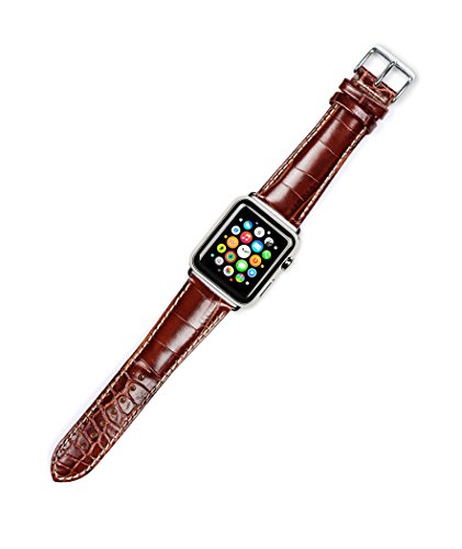 -. Title : Debeer Replacement Watch Strap - Crocodile Grain - Havana - Fits 42mm Apple Watch [Black Adapters]