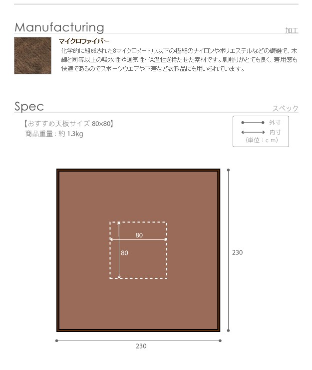 マイクロファイバー こたつ中掛け tenuto〔テヌート〕 ハイタイプ 80×80cmこたつ用(230×230cm) こたつ布団 こたつ 中掛け 正方形