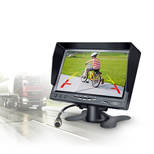 -. Feature : 7" TFT LCD Monitor + Heavy Duty Night Vision Rear View Camera;2 way video input, auto switch video when reversing, Easy installation and usage, designed especially for trucks with long trailers / Waterproof camera, 18 ir led, supply clear view when at night (Optional) / Dual Video Input - AV1/AV2 Selectable, AV2 connects to the backup camera directly.The monitor automatically turns on and switch to rearview camera when reversing. PAL&NTSC Optional / Screen Rotatable - It can be adjusted to the best view angle by the 360° swivel stand, meet more your needs on visual enjoyment / 2 Ways To Install - Standing Or Mounting, it can be adjustable by your needs. Comes with a mounting bracket, frame, and a remote control, you can install it almost everywhere you want within smooth surface or everywhere for instant video play