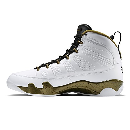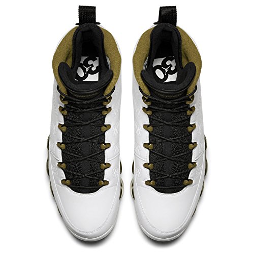 -. Binding : Apparel -. Brand : -. Color : WHITE/MILITIA GREEN//BLACK -. Department : mens -. Feature : Dynamic-fit inner bootie / Internal support straps and one-pull lace locking system / Large volume Air sole unit in heel and forefoot for cushioning -. Label : -. Manufacturer : -. Model : 302370-109 -. MPN : 302370-109 -. PackageQuantity : 1 -. PartNumber : 302370-109 -. ProductGroup : Shoes -. ProductTypeName : SHOES -. Publisher : -. Studio : -. Title : Jordan Men's Air Jordan 9 Retro Basketball Shoe