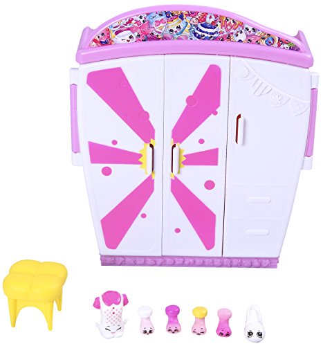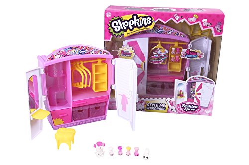 Style Me Wardrobe - Open up your wardrobe and let the fashion show begin! It's where all the stylish Shopkins hang out! Watch your favorite Shopkins check themselves out in front of the mirror at the vanity station. Go for a spin on the rotating display case. Hang and swing your Shopkins on the coat hangers and fold out the wardrobe door to create a change room. Comes with two cute storage boxes and a shoe rack. It's where all the best fashion labels live!Feature