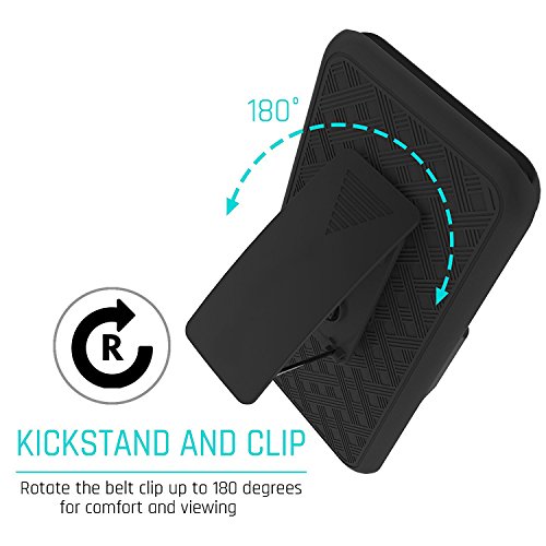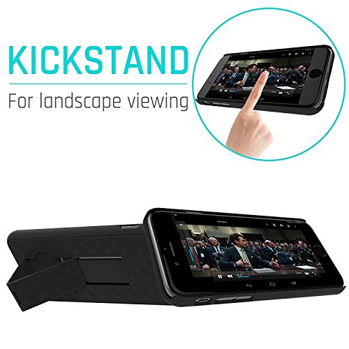 Prop up your phone for great viewing position with the built-in belt-clip kickstand.
