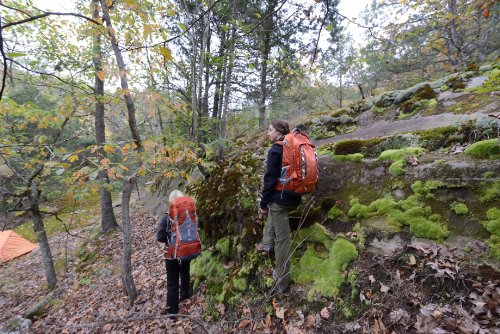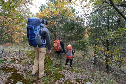 -. Feature : Rust, lightweight polyester ripstop; Adjustable shoulder straps; Center aluminum frame stay / Padded back with PE sheet; #10 main opening zipper; Large zippered front pocket / Removable padded waist belt; Hydration pocket and port; Lower side neoprene pockets / Dual side compression straps; Rescue whistle buckle on sternum strap / Capacity: 2450 cubic Inch/40L; Weight: 3 pounds, 5 ounces; SKU 6643005