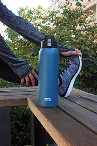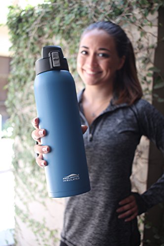 The Aquatix Sporty 32 oz Double Wall Insulated Stainless Steel Water Bottle is perfect for use at the gym, at the office, around your house and anywhere you need to take your beverage of choice with you. Made from durable and sturdy PREMIUM QUALITY, Top Chef 18/8 FOOD GRADE STAINLESS STEEL, this Aquatix Sporty 32 ounce water bottle is a great eco friendly sports bottle. The double wall insulated water bottle is PERFECT for carrying while walking, hiking, camping, use at the gym or just on the go- as it fits MOST car cup holders. No more spills and messes while driving! Ditch those plastic water bottles! GO HEALTHY with this BPA Free, FOOD GRADE stainless steel water bottle that holds a large capacity of liquids 32 fluid ounces and no longer worry about toxins and chemicals leaching into your beverage. Drink crisp, clean, healthy and refreshing drinks from Your Aquatix Water Bottle every time. Just Fill and Go! This sporty bottle features a flip top spout drinking mechanism allows the ease of staying hydrated even while on the go! The flip cap top provides single-handed drinking ability and is perfect for your busy life on the go! Stay hydrated and DRINK MORE WATER with this large capacity 32 ounce water bottle. Double vacuum insulated wall construction contributes to hot teas, soup, coffee or other blends being consistently hot for up to 6 hours. And, for cold water, smoothies, soft drinks, or anything you may need very cold, 24 hours of insulated confidence, guaranteed cold, period! The bottle will not "sweat", meaning it will not create condensation which may leave a "ring" of liquid on your expensive buried walnut side table. Easy to hand wash or clean, NO aftertaste after cleaning. COLD LIQUIDS or HOT LIQUIDS! This is a double wall insulated water bottle that is made of 18/8 food grade stainless steel water bottle! No other bottle has all the features of our Aquatix Sport Bottle!Feature