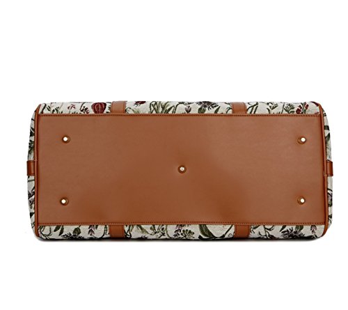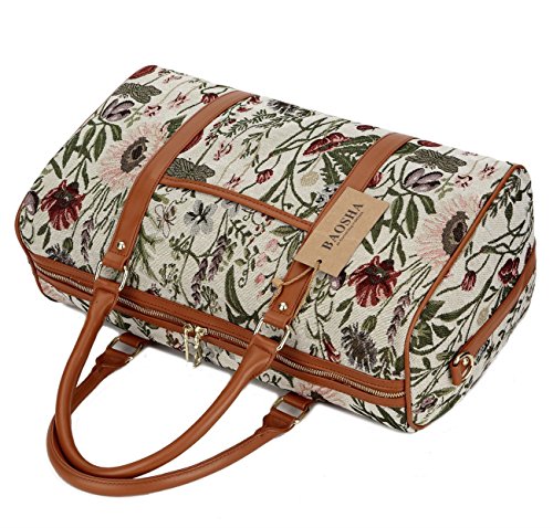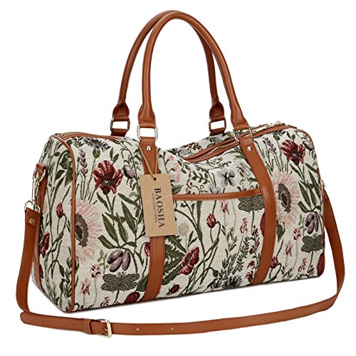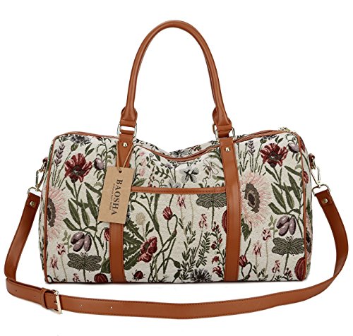 BAOSHA HB-25 Ladies Women Canvas Holdalls Weekender Bag Travel Duffel Tote Bag Weekend Overnight Travel Bag Handbags with Strips and PU Leather Decoration