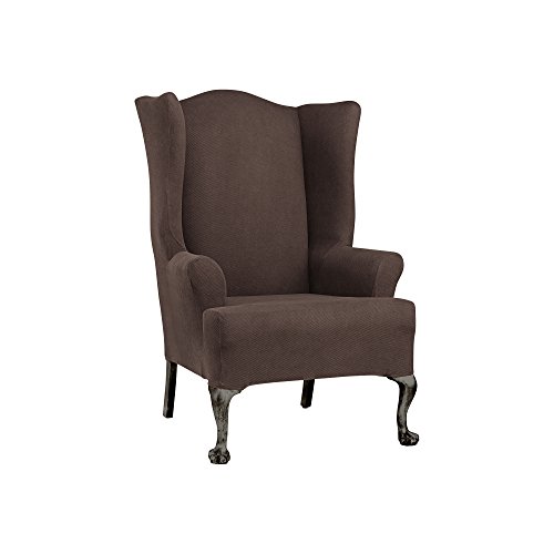-. Binding : Misc. -. Brand : Surefit -. Feature : Designed to work with wing furniture without upholstered skirts and with T-cushions / The elastic is free-floating inside hem of the cover to allow you to adjust fullness / Velcro sewn to each elastic can be secured behind the legs to achieve a form fit / Arm front relaxed at 5 inches will cover narrow arms, but will stretch to 10 inches / The stretch wing slipcover will accommodate a back height of 45 inches -. Label : SURE FIT INC -. Manufacturer : SURE FIT INC -. PackageQuantity : 1 -. ProductGroup : Pet Products -. ProductTypeName : PET_SUPPLIES -. Publisher : SURE FIT INC -. Studio : SURE FIT INC -. Title : Sure Fit Stretch Wing Chair Slipcover