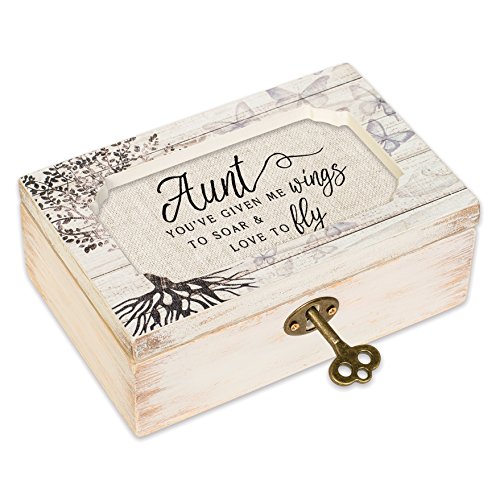 Wings Decoupage Whitewash Tree Petite Music Musical Box Plays Tune Wonderful World