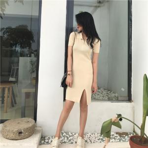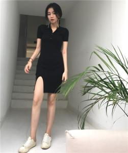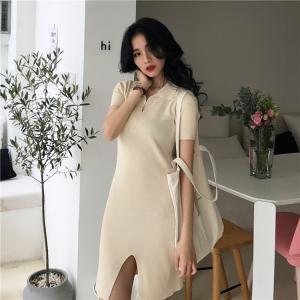 スリットワンピース 襟付き スポーティー ミニ丈ワンピースシャツワンピース スリット 大人可愛い 大人女子 プチプラ