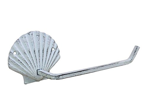 Hampton Nautical K-9211-w Whitewashed Cast Iron Shell Toilet Paper Holder 10" - Beach Bathroom Decoration - Beach Home Decorating