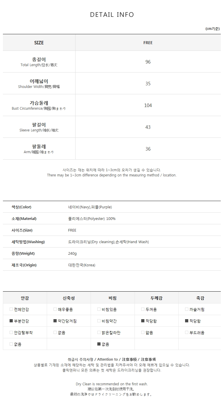 [ 모델 착용 : 퍼플 , FREE size ]