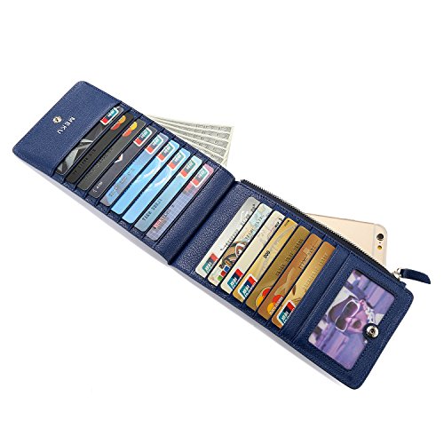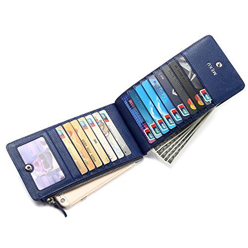 - ✔ MULTIFUNCTIONAL AND PRACTICAL. The credit card case wallet featuring 18 card slots, a photo or ID window, an open cash pocket, a zippered cell phone pocket. You can use it as a credit card holder, a bifold long wallet and also a cell phone sleeve pouch. The pocket with secure zipper closure may easily fit your phone, including iPhone 6 plus and similar, and keeps your cell phone safe.