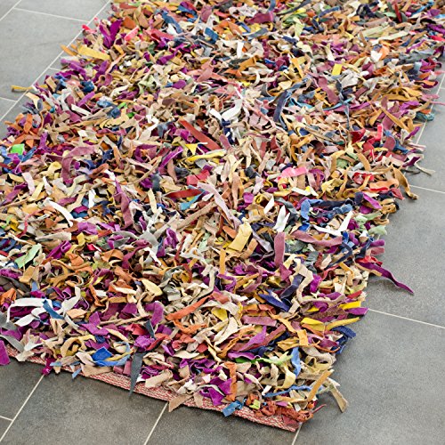 The Safavieh Leather Shag Collection, with its soft, luxurious strips of genuine leather is the perfect, moder accent for your home. Each leather strip is hand-tied to the sturdy cotton backing, ensuring high durability and a long life. The warm colors and soft feel make this the perfect rug to fill that empty space in your home.Feature