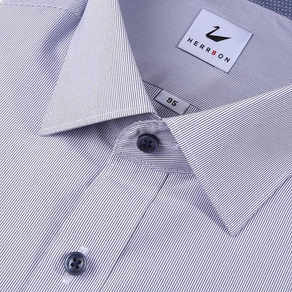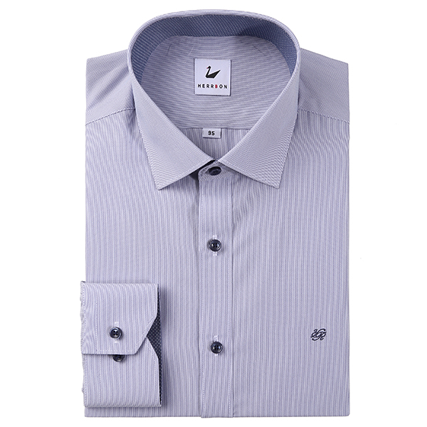 2018년 세련된 네이비 스트라이프 슬림핏셔츠,소매커프스 배색이 포인트