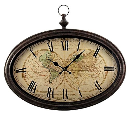-. Title : World Map Antiqued Bronze Framed Wall Clock