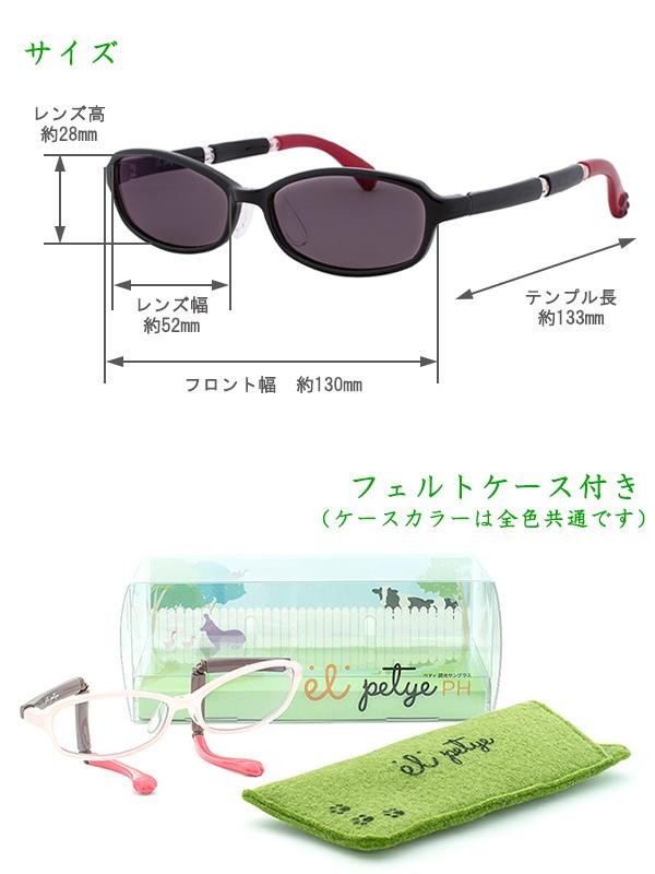 | サイズ | レンズ高:約28mm、レンズ幅:約52mm、フロント幅:約130mm、テンプル長:約133mm 個装サイズ:8×18×7cm |
