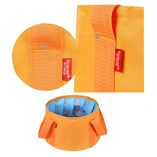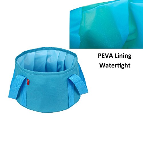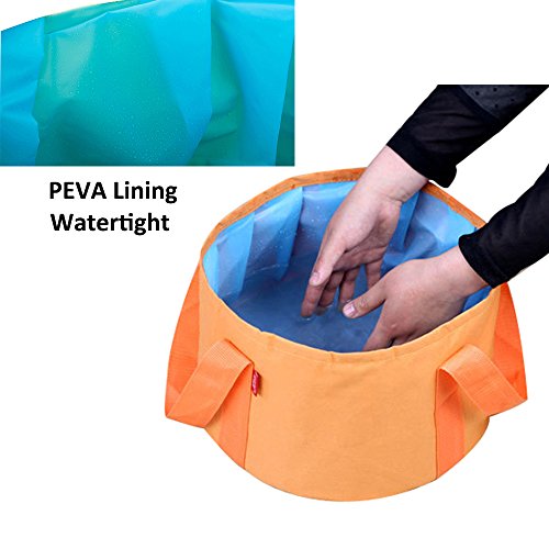 Studio : T-hurry Publisher : T-hurry Product Description Portable Collapsible Wash Basin: -Heavy Duty:Made from firm Oxford Fabric -Waterproof:PEVA lining without any leaks -Lightweight and Foldable:180g/pc only,easy to fold and come with a carry bag -Washable and Reusable:Easy to wash with soapy water,If you hope carry hot water,we recommend no more than 80 Degrees Celsius