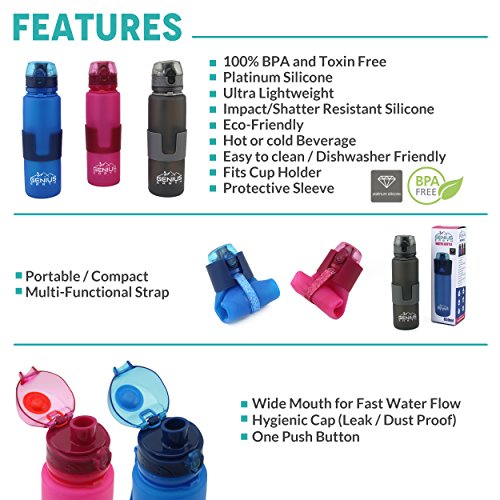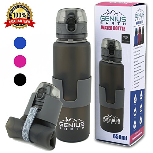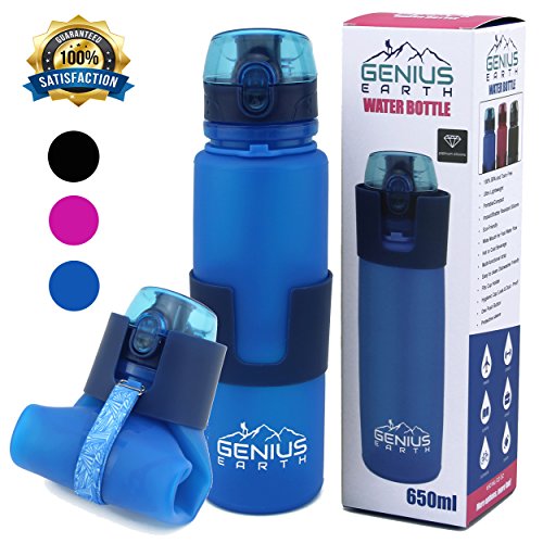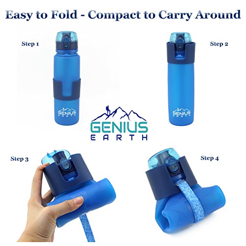 GENIUS EARTH'S-100% GUARANTEE - We have done the research to find the very best accessories for all of your outdoors fun, therefore you can buy your Foldable Water Bottle with complete confidence. Our reusable drinking bottles are made of platinum silicone that is safe and bpa free. If for any reason you are not completely thrilled with your Genius Earth Folding Bottle, please let us know for a replacement or refund! Click ADD TO CART NOW to get your hydration going with our sports bottle.