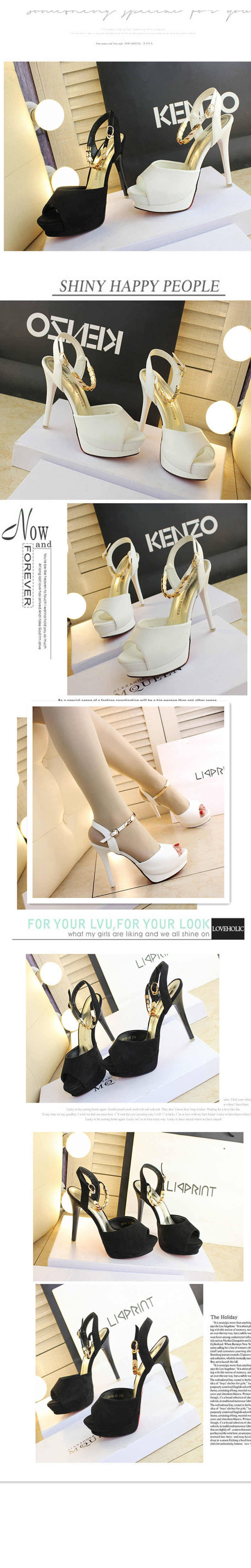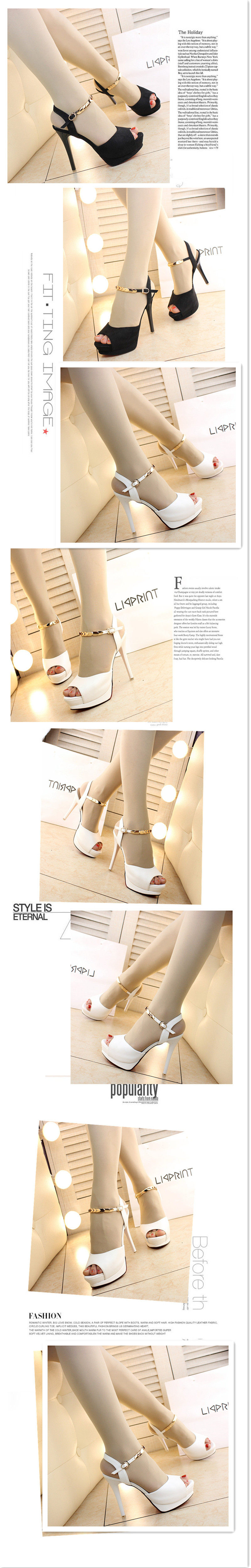 OL性感高跟凉鞋细跟防水台黑色鱼嘴鞋12cm搭扣凉鞋韩版白色女夜店