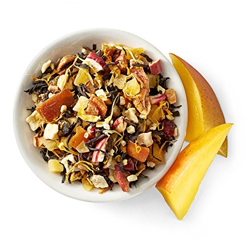 -. Feature : This mango-lover's dream blends mango chunks, candied mango and mango chips with Ceylon tea from Sri Lanka, Chinese black tea from the Hunan Province, passion fruit pieces and marigold petals.