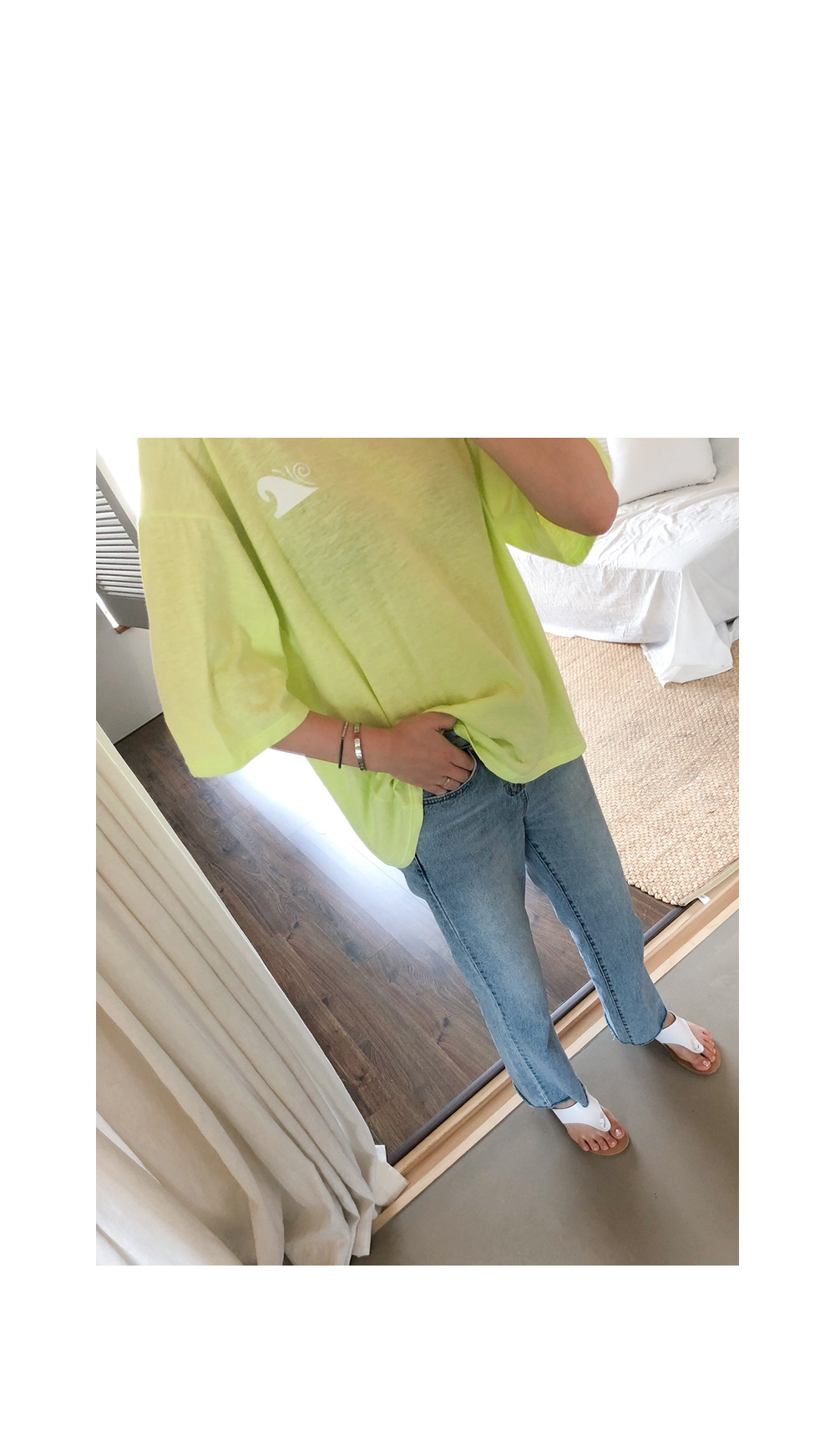 밑단 살짝 매듭지어 포인트 주셔도 좋고