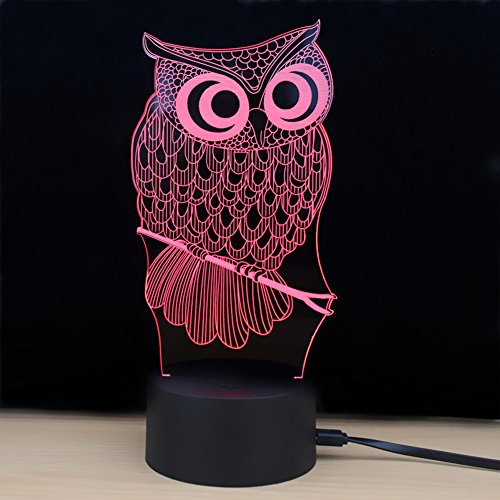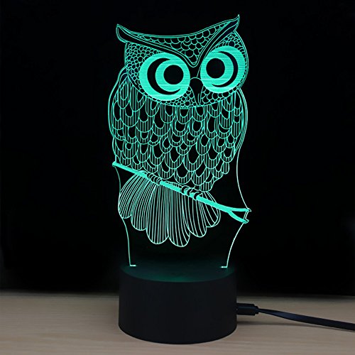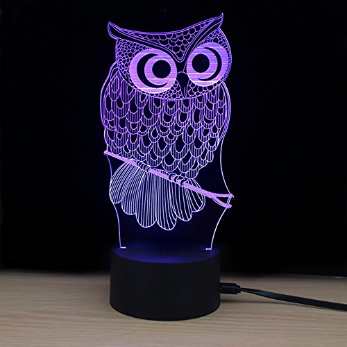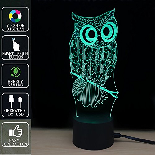 -. Title : Owl 3D Night Light Touch Table Lamp, Fipart 7 Color 3D Phantom Atmosphere Light, With Acrylic Base And USB Decorative Intelligent LED Lights