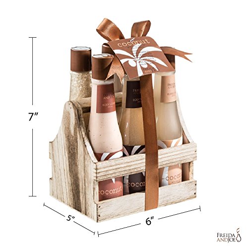 The Tropical Coconut Bath & Body Spa Gift Set in this natural wood liquor caddy is a unique gift which will easily blend in to your kitchen, bathroom, or conference room décor.