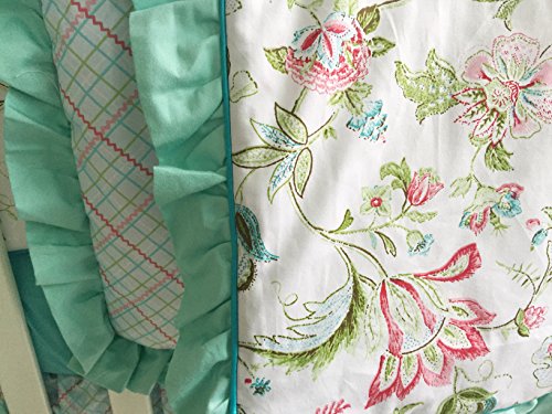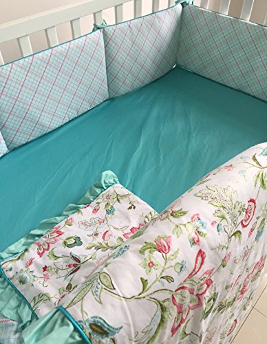 (sahaler)/Nursery/Bedding/DIRECT FROM USA/Teal Green Flowers 7pcs crib set Baby Bedding Set Crib Bedding Set Girl Nursery Crib bedding