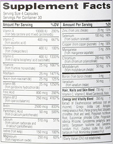 An advanced multi-vitamin and mineral made specifically for a woman's journey through life. - Supports health & wellness - Increases energy & vitality - A proprietary blend that offers women the energy and vitality needed to power through everyday activities of life. - Promotes healthier hair, nails & skin - With clinically proven biotin, along with Vitamins C, E, & mixed carotenoids, this blend will provide you nutritional support to achieve healthy and attractive hair, nails and skin. - Provides 100% or more of the daily requirements of 18 important vitamins & mineralsFeature