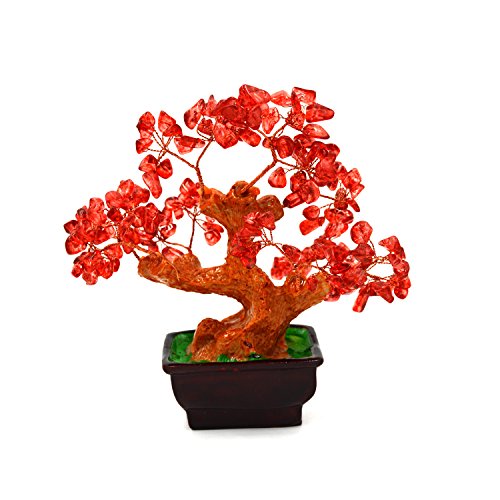 Feng Shui Red Crystal Money Tree Bonsai Style Decoration for Wealth and Luck