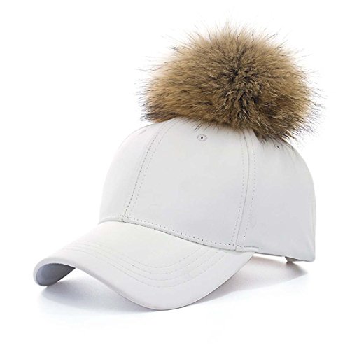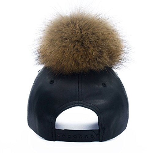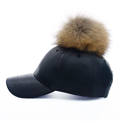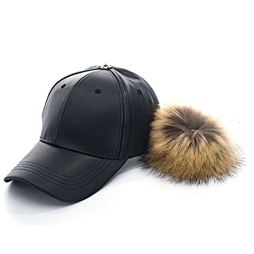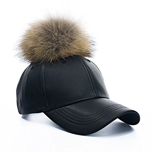 -. Title : HH HOFNEN Faux Leather Baseball Caps with Real Fur Pom Pom Outdoor Adjustable Hats