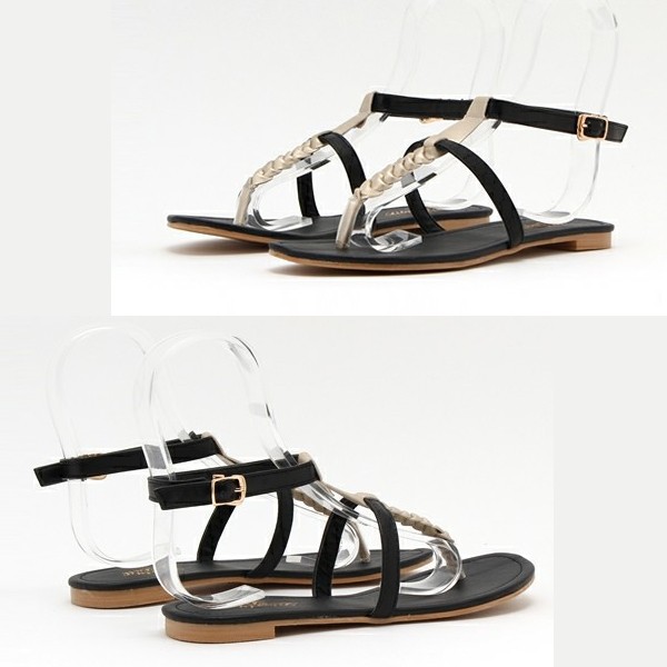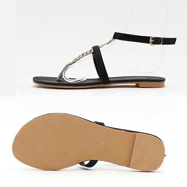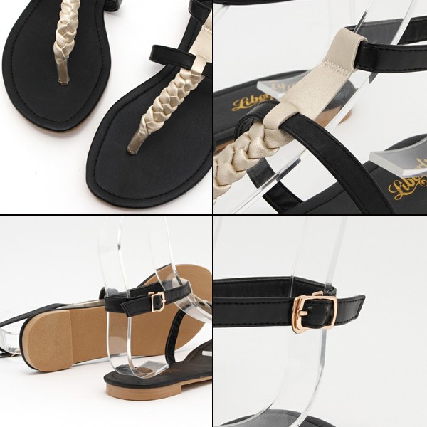 フロントの編み込みトングがおしゃれなトングサンダル!!真夏の定番!女の子の足元を可愛らしく飾るトングサマーサンダル登場!くすんだゴールド調カラー×モノトーンが足元をクールに演出してくれます♪フロントから続くアンクルストラップは、3段階で調節可能。 しかもひっかけるだけの簡単タイプ。夏の定番となったトングサンダルだから、1足はもちたいアイテムですね♪ヒールも低くシンプルなデザインだから、合わせやすいアイテムです。プチプライスだから、色違いでゲットするのもおススメです!モデルのように、ネイルをしたり、お手持ちのアンクレットやエスニックアクセサリーを重ねづけするスタイルにもぴったり!元気に夏を楽しみたい!そんな1足です!■素材:アッパー/合成底