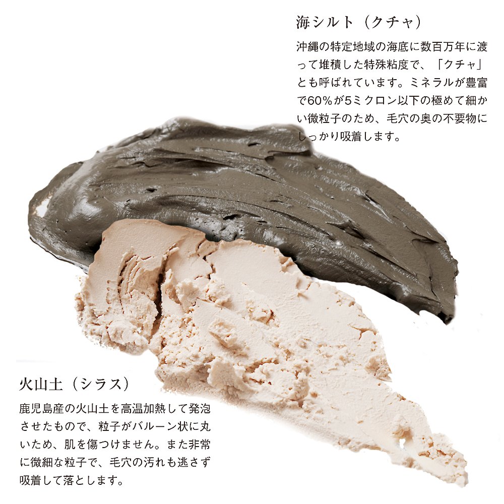 Volcanic soil, sea silt, with two mud combinations, we also grind off the dirt behind the pores.
