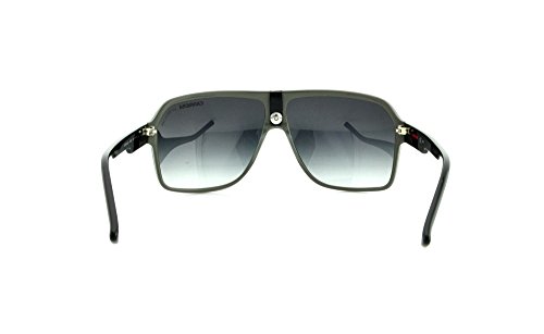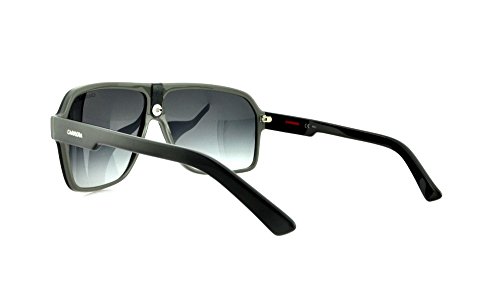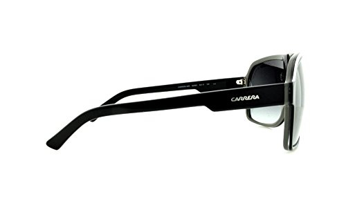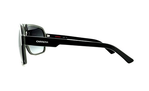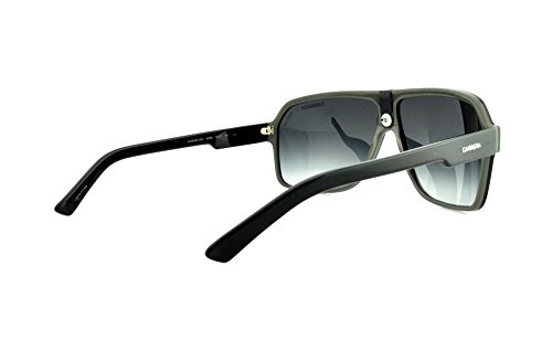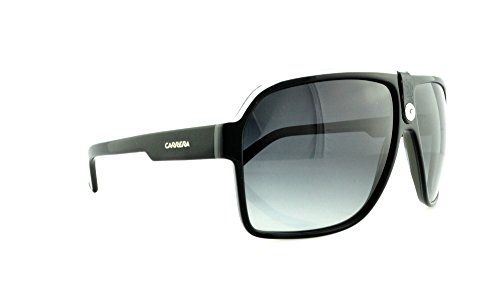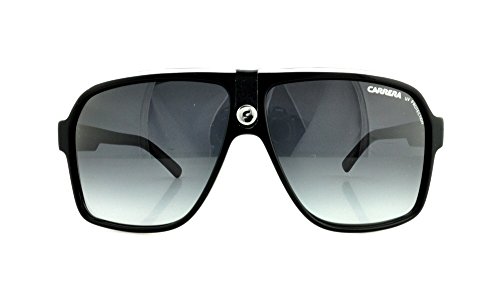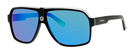 Carrera Sunglasses, style Carrera 33 is an oversize rectangular plastic aviator with a logo-engraved button on leather on the bridge. The Rx-able Carrera 33 features a saddle nose bridge and wire core adjustable plastic temples for extreme comfort. Featured on the temples is the Carrera Sunglasses logo. Carrera Sunglasses have lightweight shatter/impact resistant lenses that always ensure 100% protection from harmful UVA/UVB rays.Feature
