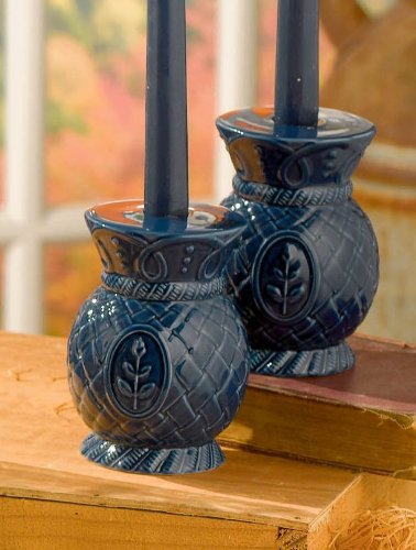 Grasslands Road Avignon Cobalt Blue Basketweave Ceramic Taper Holder