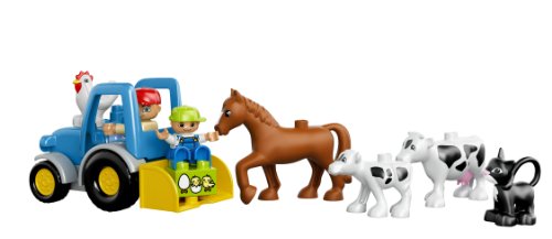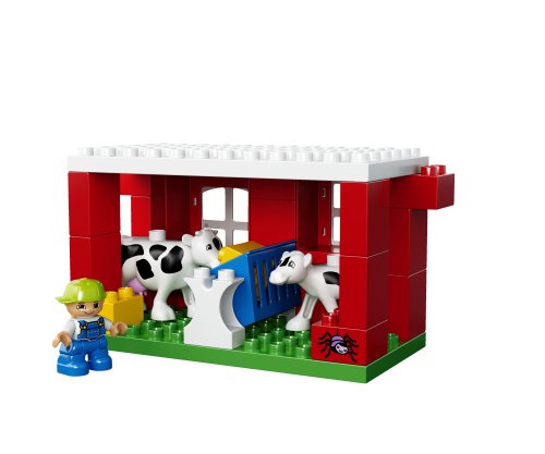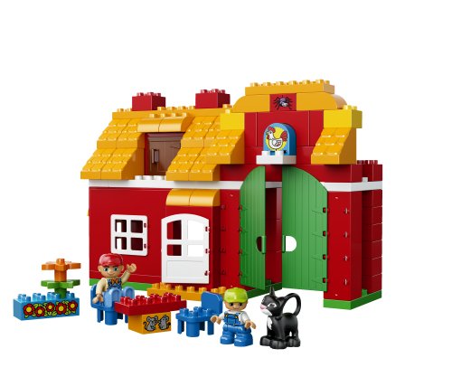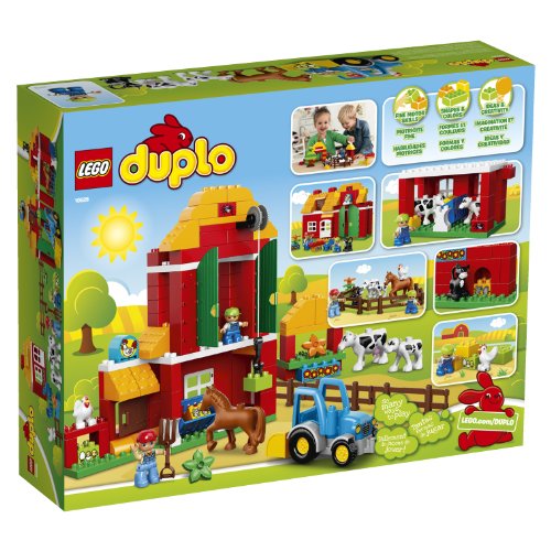 - Feature : Includes 2 LEGO DUPLO figures: a farmer and child; Also includes a horse, calf, cow, chicken and a cat / Features a barn with opening doors and a winch to lift the hay, farmhouse with redesigned roof, stable, buildable DUPLO tractor and a fence / Farmhouse features opening door and window, flower-decorated DUPLO brick and 2 chairs; Stable features an opening window, a swiveling feeding trough / Accessories include a pitchfork, feeding trough, 2 flower elements, classic and decorated DUPLO; Buildable tractor features a detachable bucket / Farmhouse measures over 7" high, 3" wide and 6" deep; Barn measures over 11" high, 7" wide and 5" deep; Stable measures 8" high, 8" wide and 6" deep