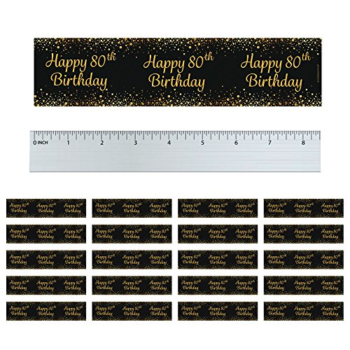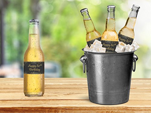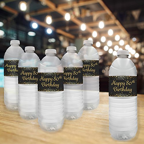 Black and Gold 80th Birthday Party Water Bottle Labels (20 Count)