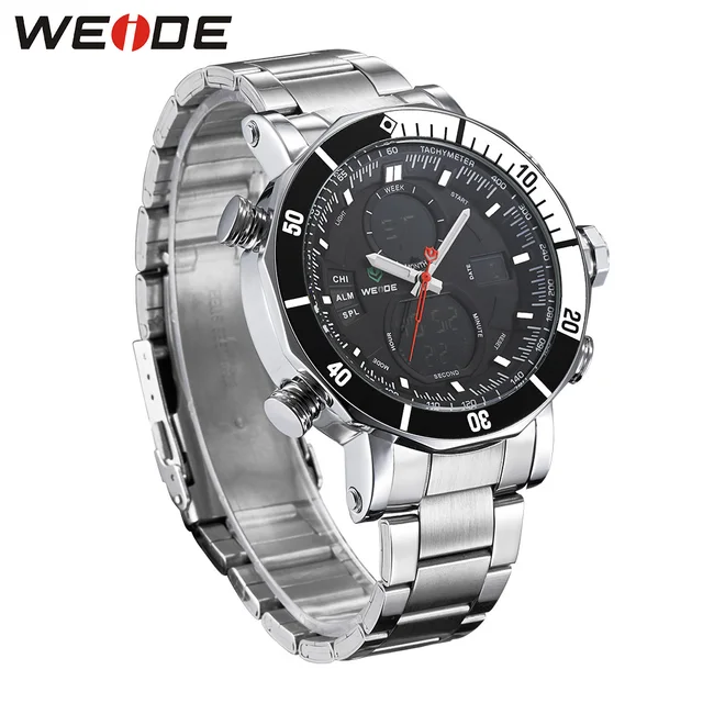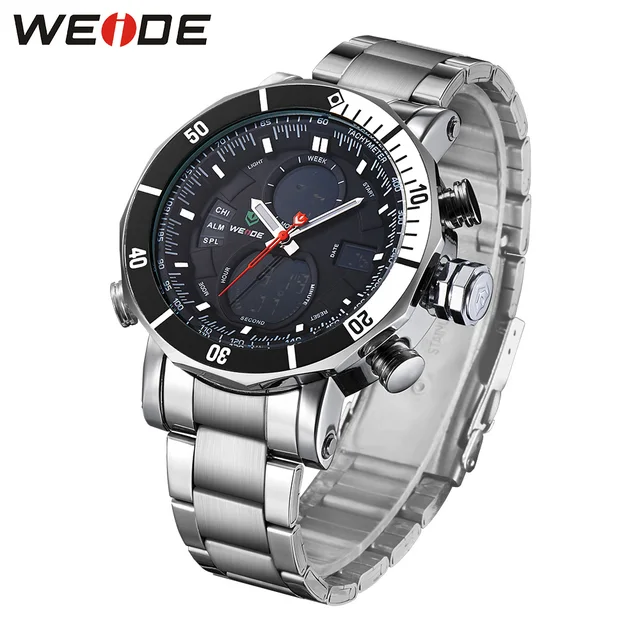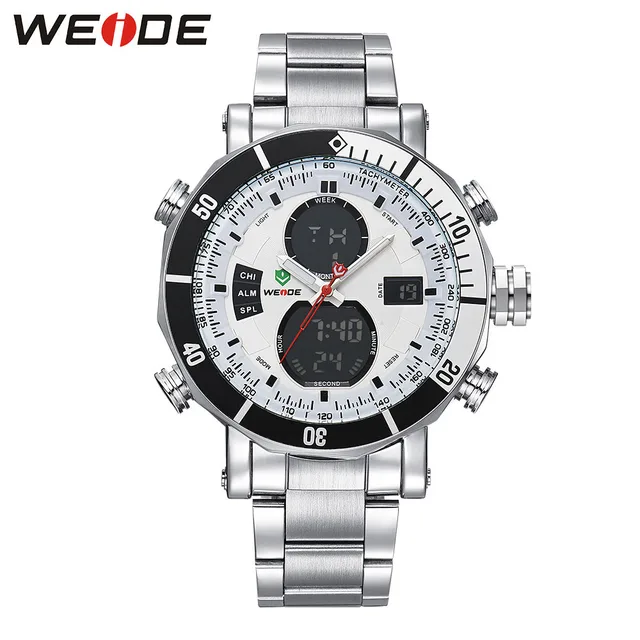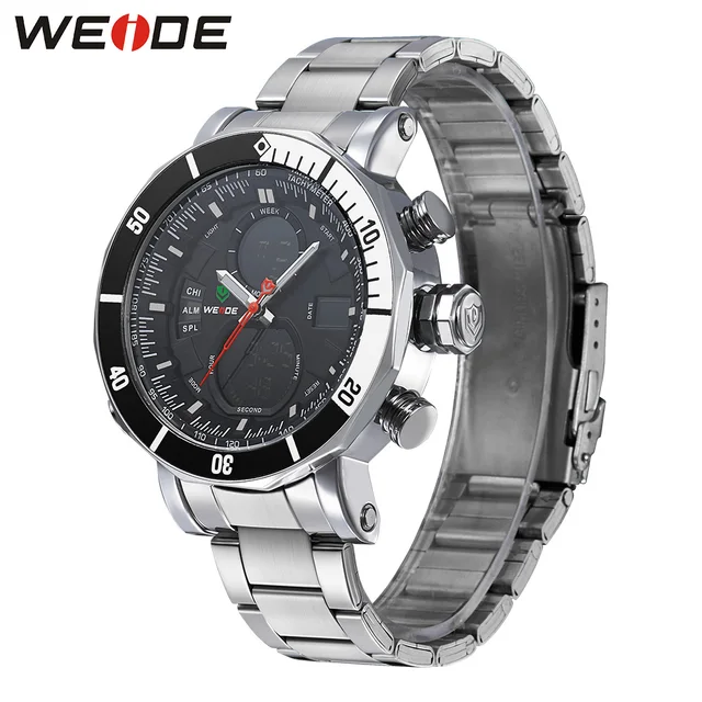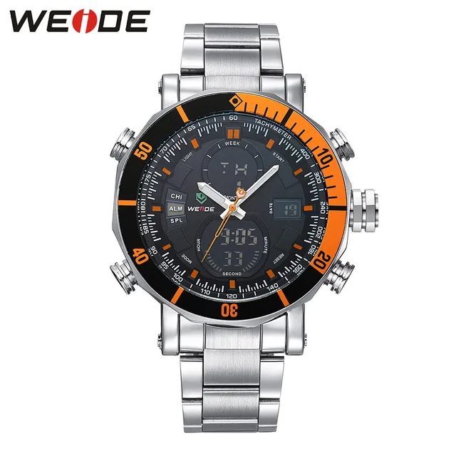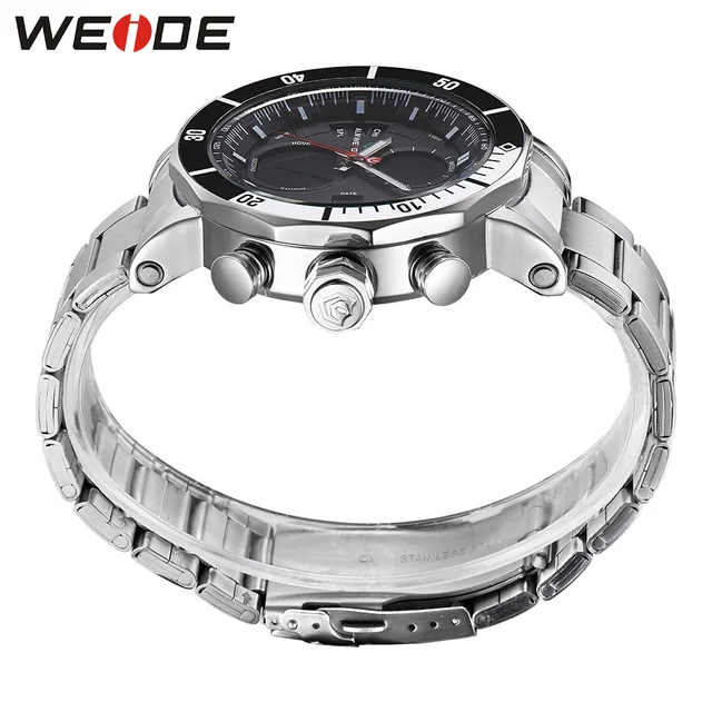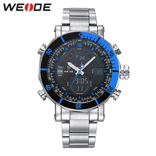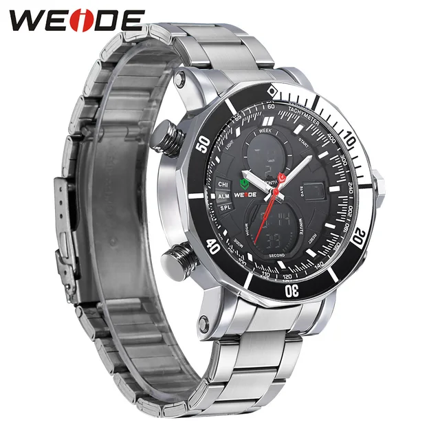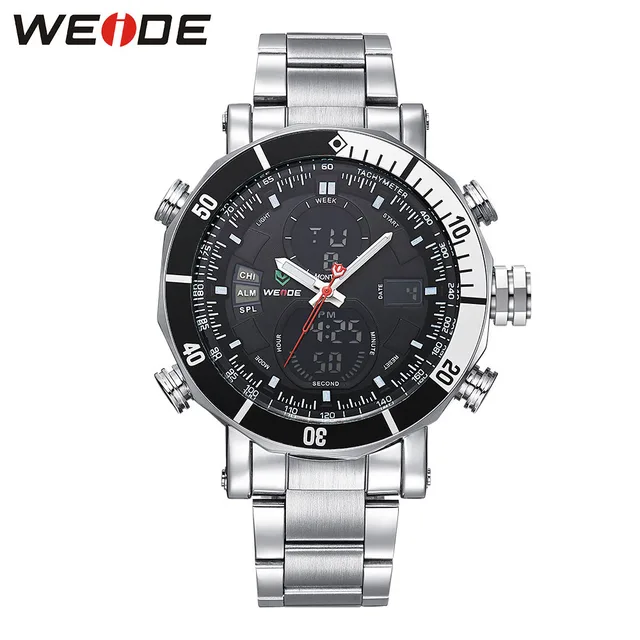 | [해외] 웨이드 군사 육군 고급 스테인레스 스틸 쿼츠 손목 시계 방수 다기능 LCD 디지털 남성 시계/WH5203 |